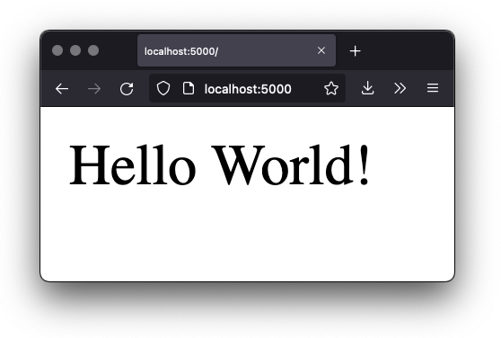 The handler in this case is dead simple, it just returns a string, “Hello World!”, to the client. This isn’t hypermedia yet, but as we can see in [fig-helloworld], a browser will render it just fine.
